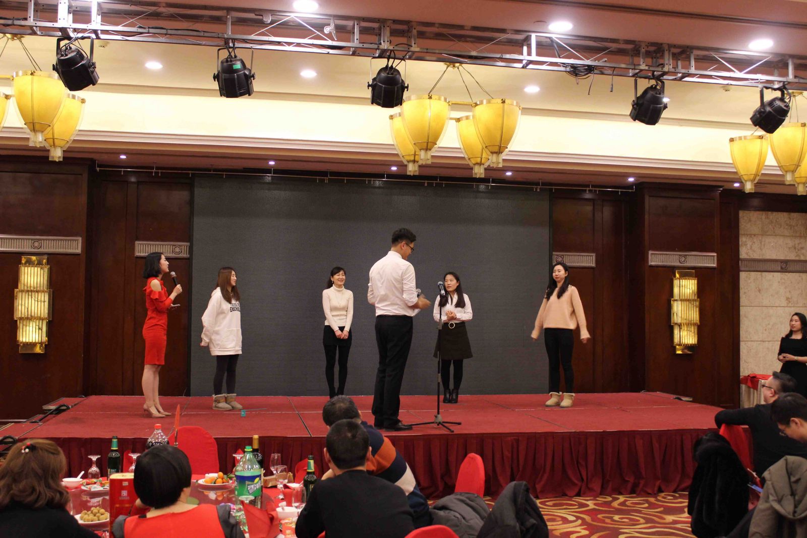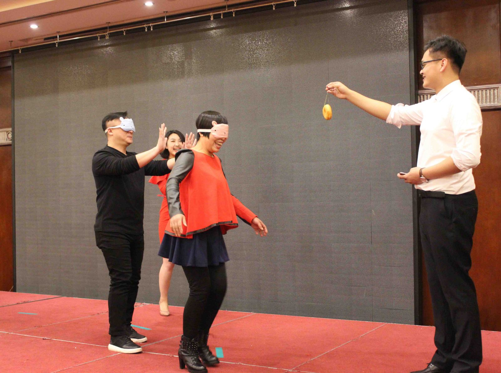 拓展環(huán)節(jié)將氣氛推向了高潮,滿場歡聲笑語。"吃掉甜甜圈"、"我愛記歌詞"、"歌曲猜猜猜"、"嘴的盛宴"等游戲涌現(xiàn)出了一批高手,凸顯了天順人才濟濟。尤其是"嘴的盛宴",隊員們在徐欣董事長的帶領(lǐng)下團結(jié)協(xié)作,攻克難關(guān),最終成功完成了任務(wù)。"團結(jié)"、"克難"、"聚力"、"共贏"貫穿整個拓展環(huán)節(jié),每位家人都受益匪淺。