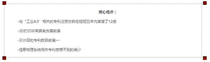主要結(jié)論:與"工業(yè)4.0"相關(guān)的專利注冊總數(shù)在短短五年內(nèi)激增了12倍。